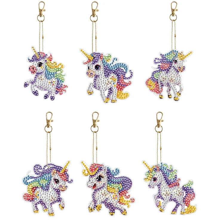 6 x Bunte Einhörner Schlüsselanhänger - Diamond Painting