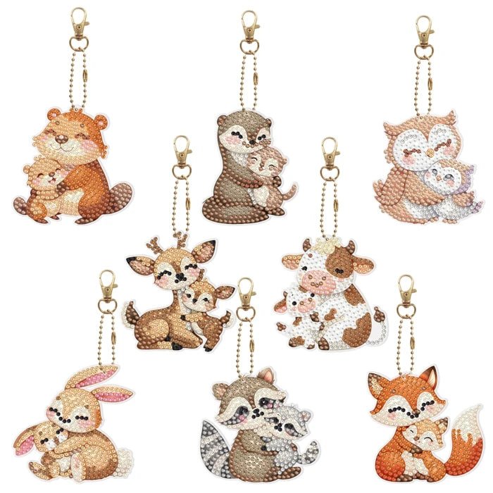 8 x Tiermama mit Kind Schlüsselanhänger - Diamond Painting