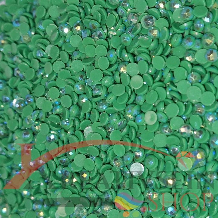 DMC 701 Christmas Green LT - runde Steine - Aurora Borealis (AB) - Diamond Painting