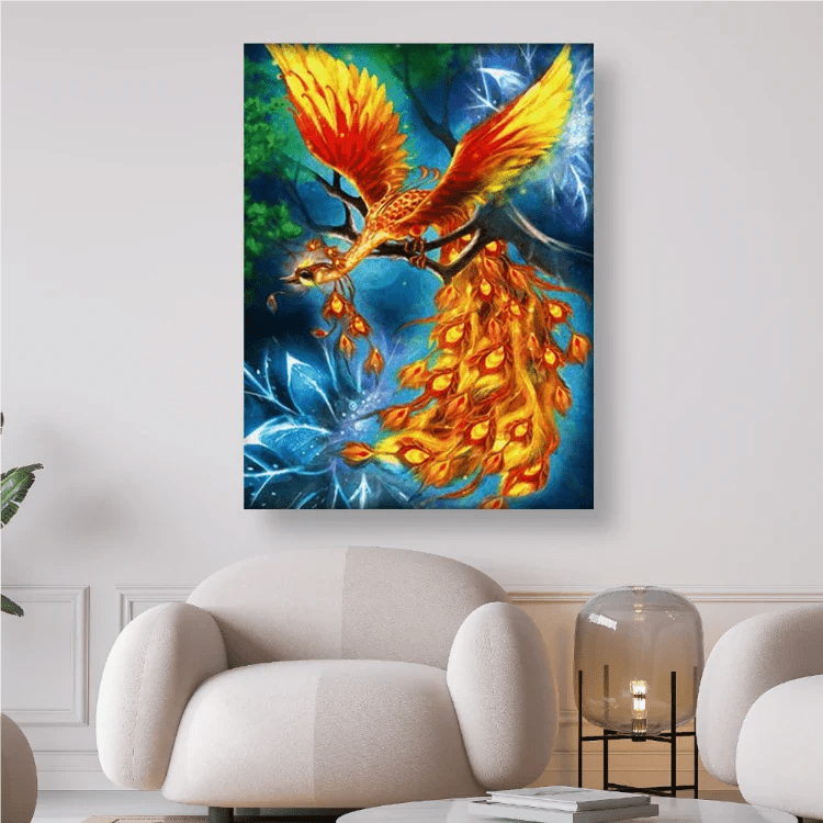 Feuervogel Phoenix sitzt auf Baum - 5D DIY Diamond Painting