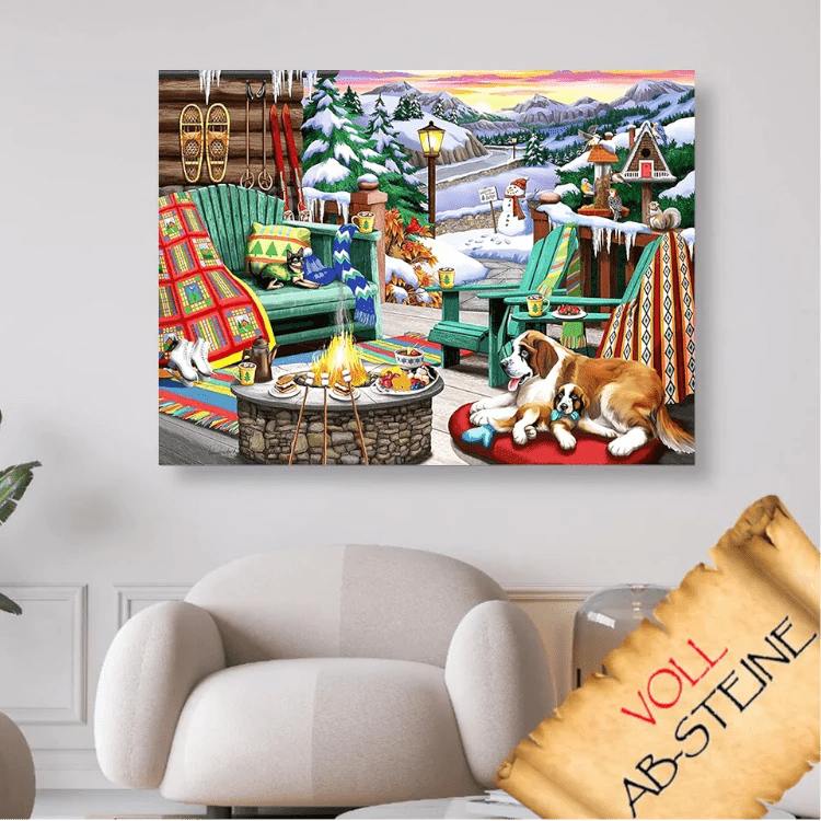➩ Hochwertige bedruckte Leinwand mit Deinem Wunschmotiv ➩ Gemütlicher Winterabend - Voll AB 5D DIY Diamond Painting. (nummeriert mit Zahlen-/ Symbolcode)