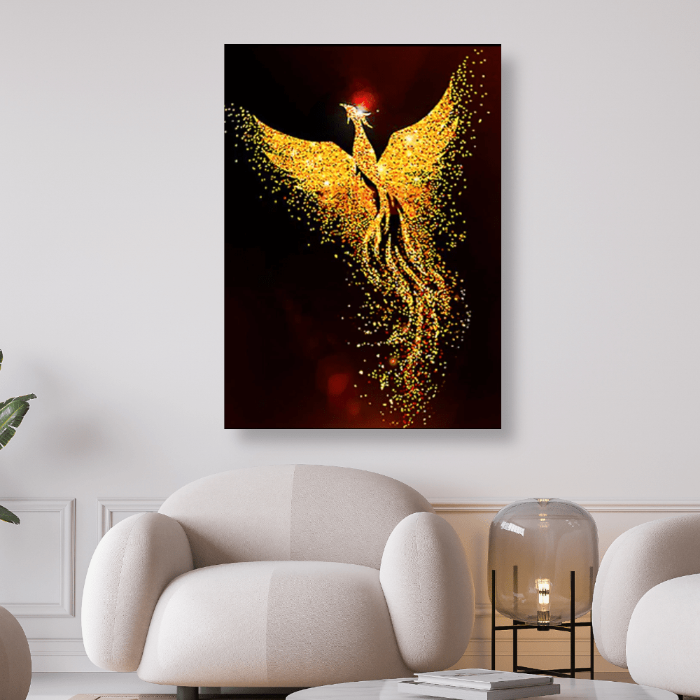 Goldener Feuervogel mit roter Krone Phoenix - 5D DIY Diamond Painting