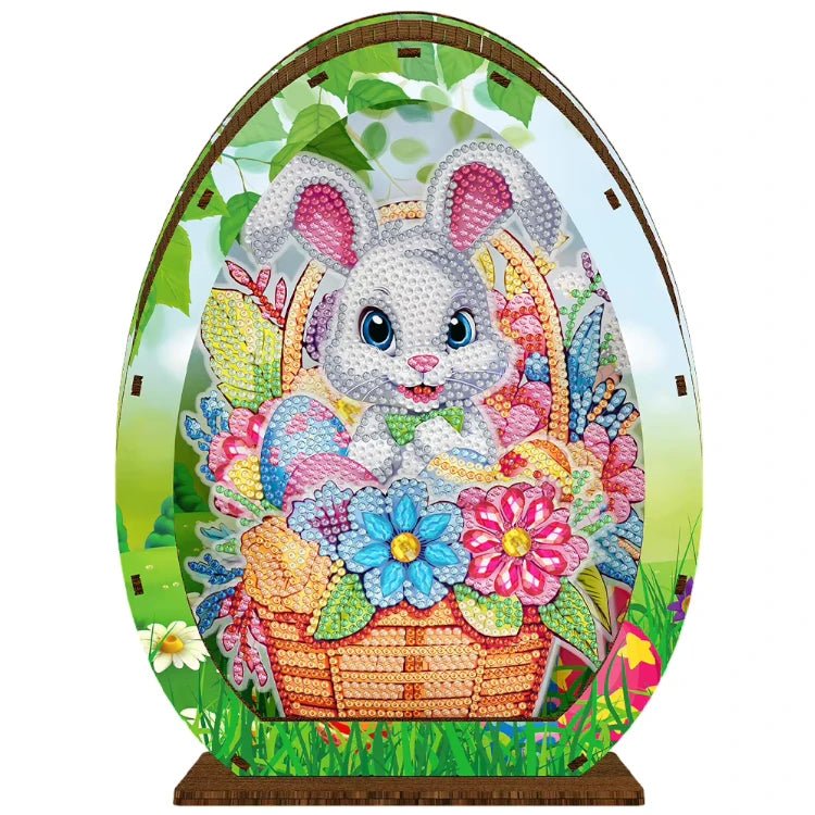 Osterhase mit Blumen und Osterei Aufsteller 3D mit LED - Diamond Painting