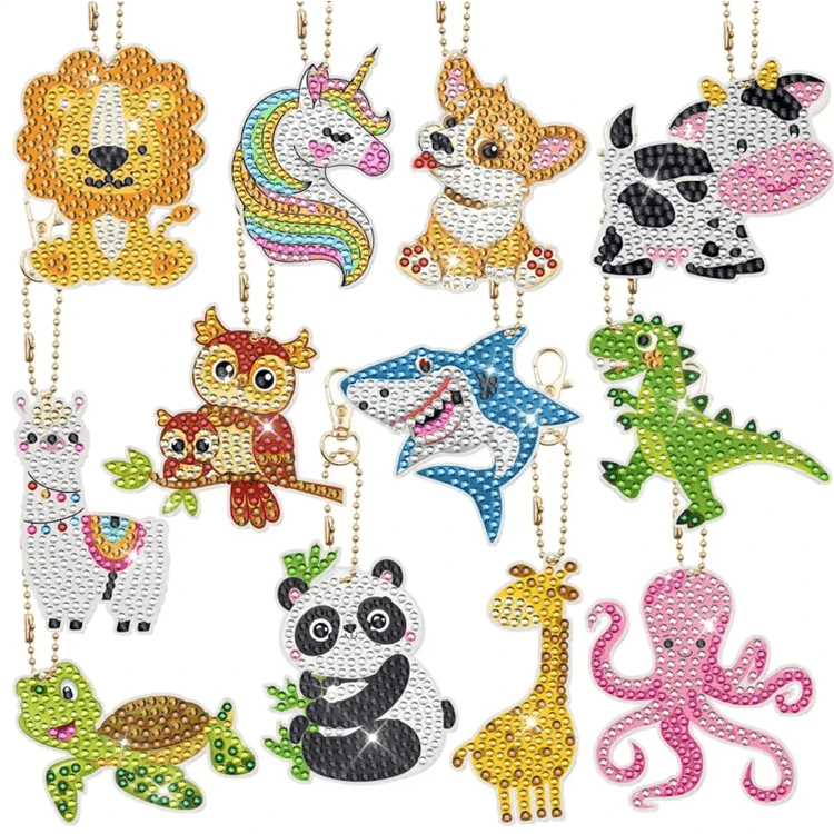 12 x Tiere Schlüsselanhänger - Diamond Painting