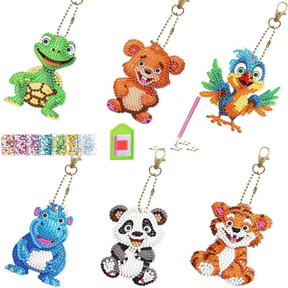 6 x Lustige Tiere Schlüsselanhänger - Diamond Painting