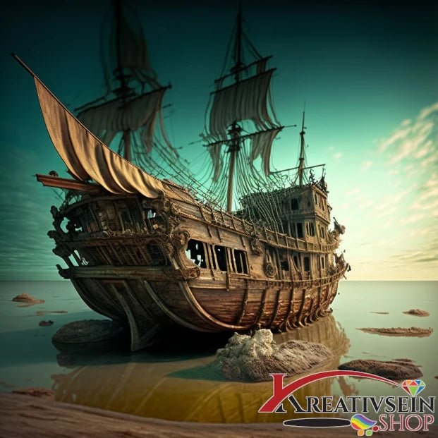 Altes Segelschiff am Strand - Malen nach Zahlen