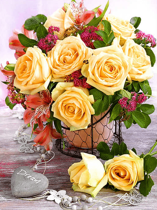 Blumenstrauss mit gelben Rosen - 5D DIY Diamond Painting