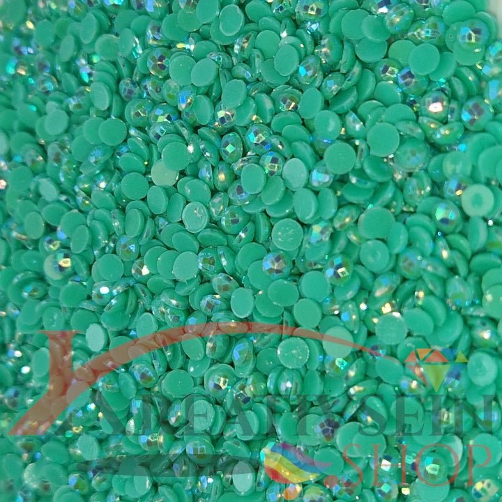 DMC 913 Nile Green MED - runde Steine - Aurora Borealis (AB) - Diamond Painting