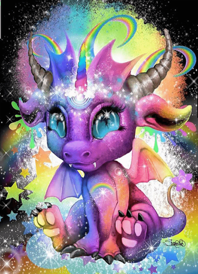 Kleiner bunter Drache - 5D DIY Diamond Painting