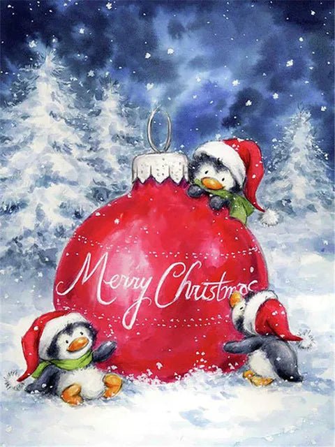 Pinguine mit Weihnachtsbaumkugel - 5D DIY Diamond Painting
