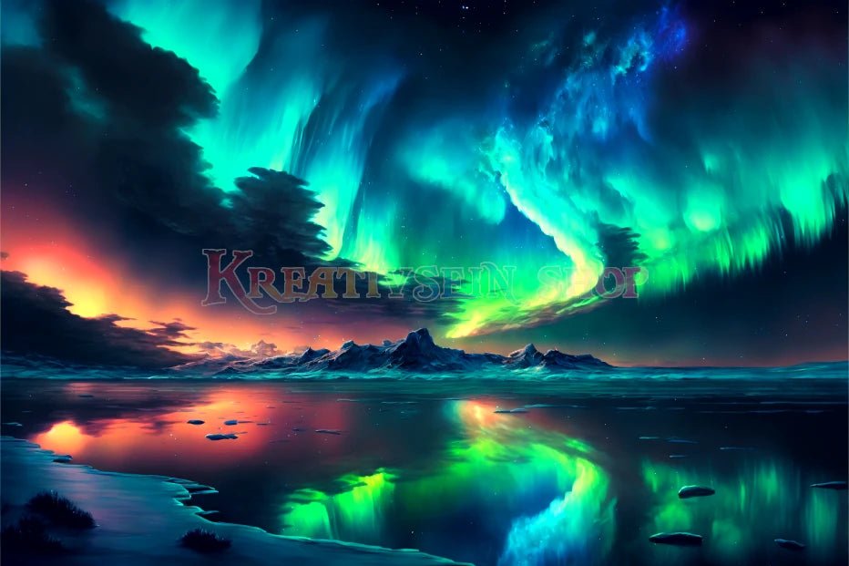 Polarlichter spiegeln sich im Wasser - 5D DIY Diamond Painting
