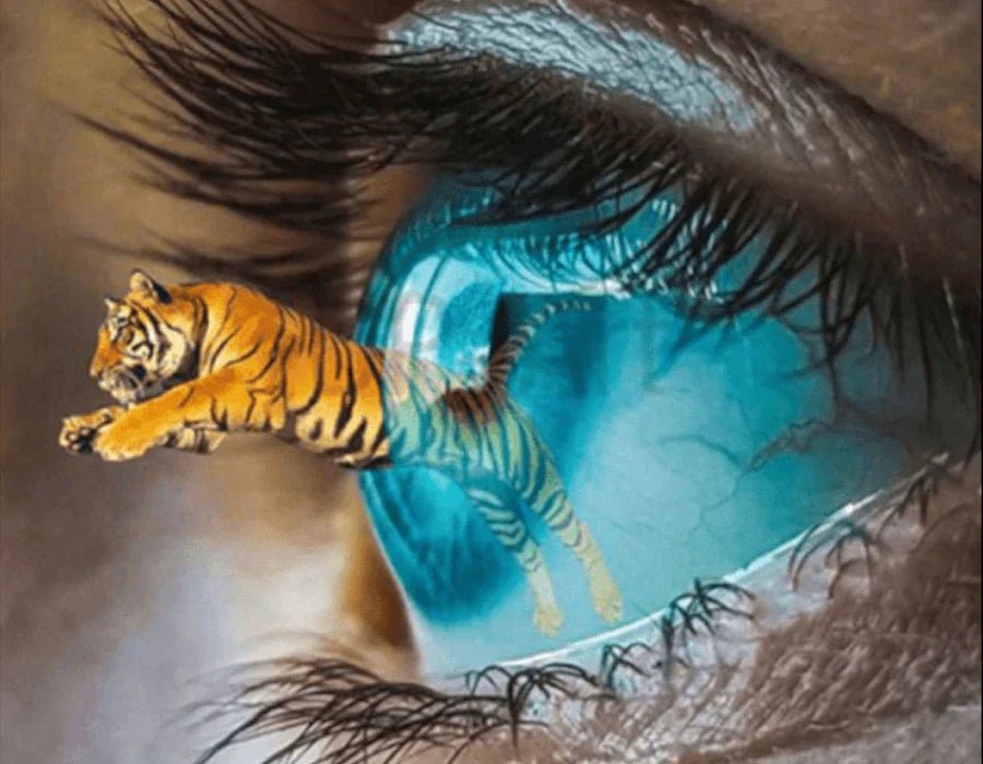 Tiger springt aus Auge - 5D DIY Diamond Painting