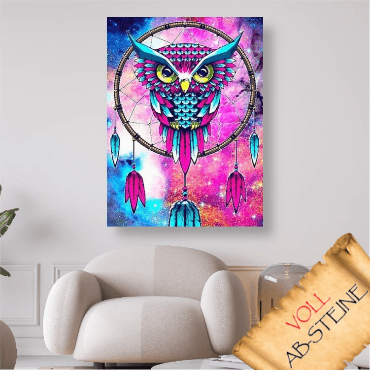 ➩ Hochwertige bedruckte Leinwand mit Deinem Wunschmotiv ➩ Traumfänger Eule - Voll AB 5D DIY Diamond Painting. (nummeriert mit Zahlen-/ Symbolcode)