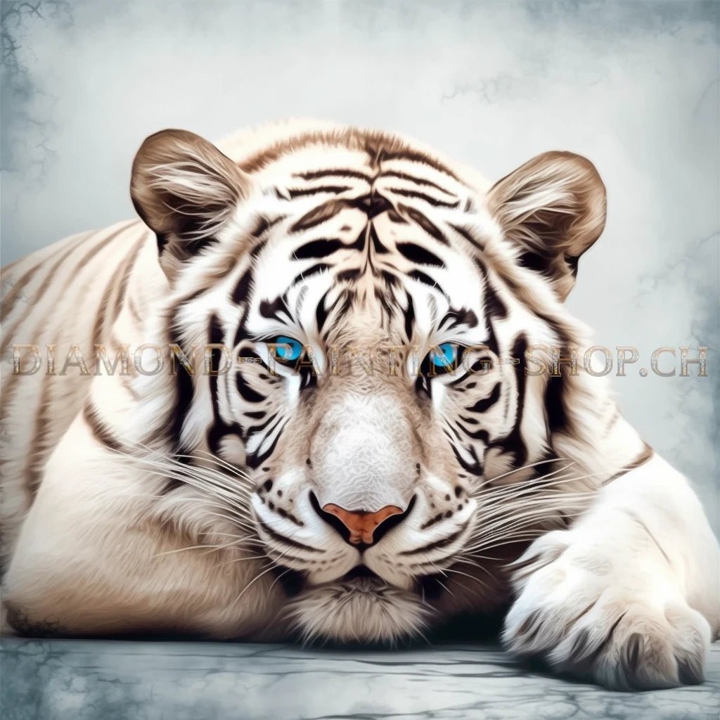 Sie möchten eine andere Grösse kaufen? Weisser Tiger mit blauen Augen Diamond Painting weitere Grössen.