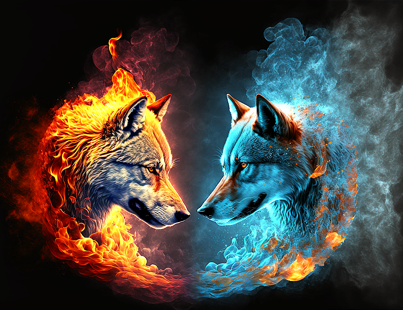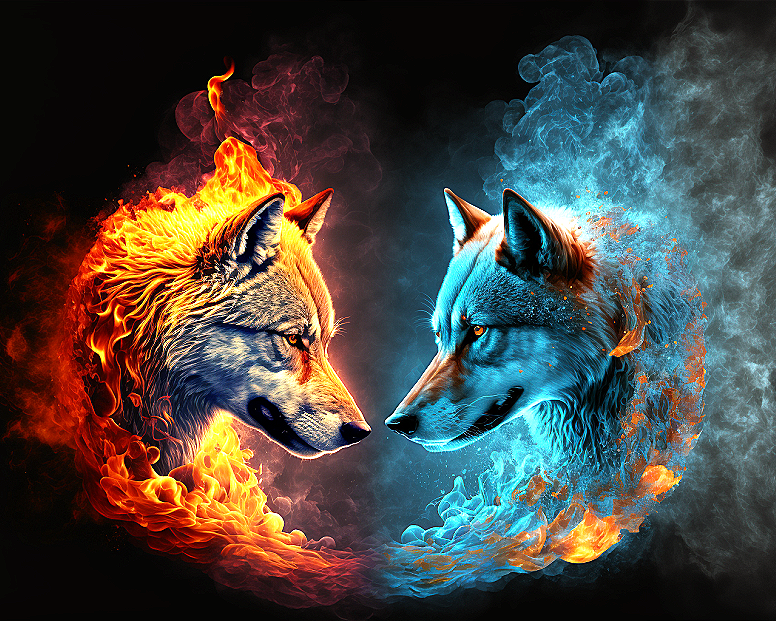 Wolfsköpfe Feuer Wasser- Malen nach Zahlen