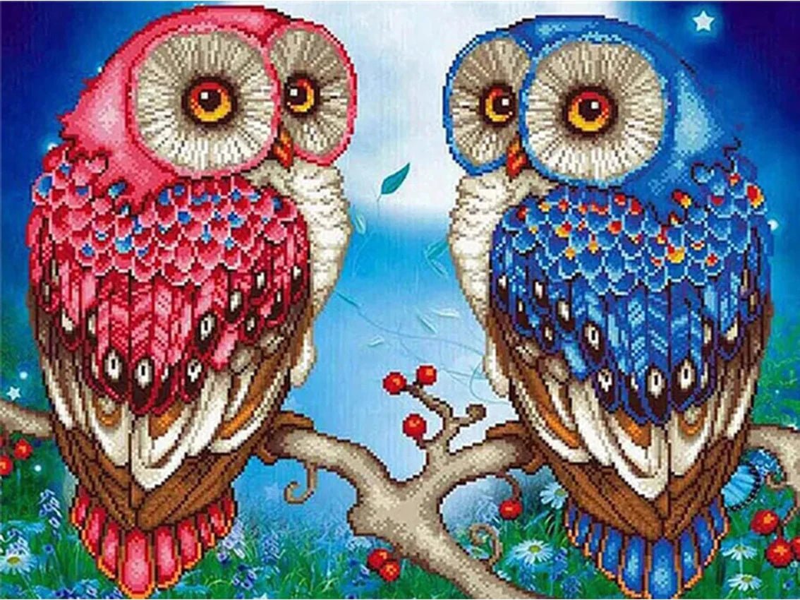➩ Hochwertige bedruckte Leinwand mit Deinem Wunschmotiv ➩ Zwei Eulen - Voll AB 5D DIY Diamond Painting. (nummeriert mit Zahlen-/ Symbolcode)