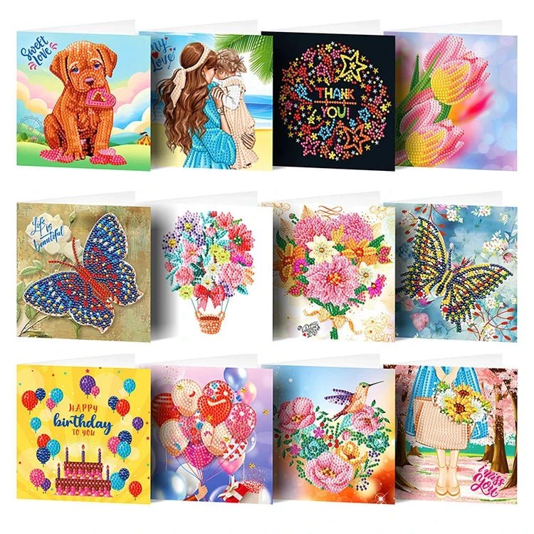 12 x Grusskarte verschiedene Anlässe - Diamond Painting