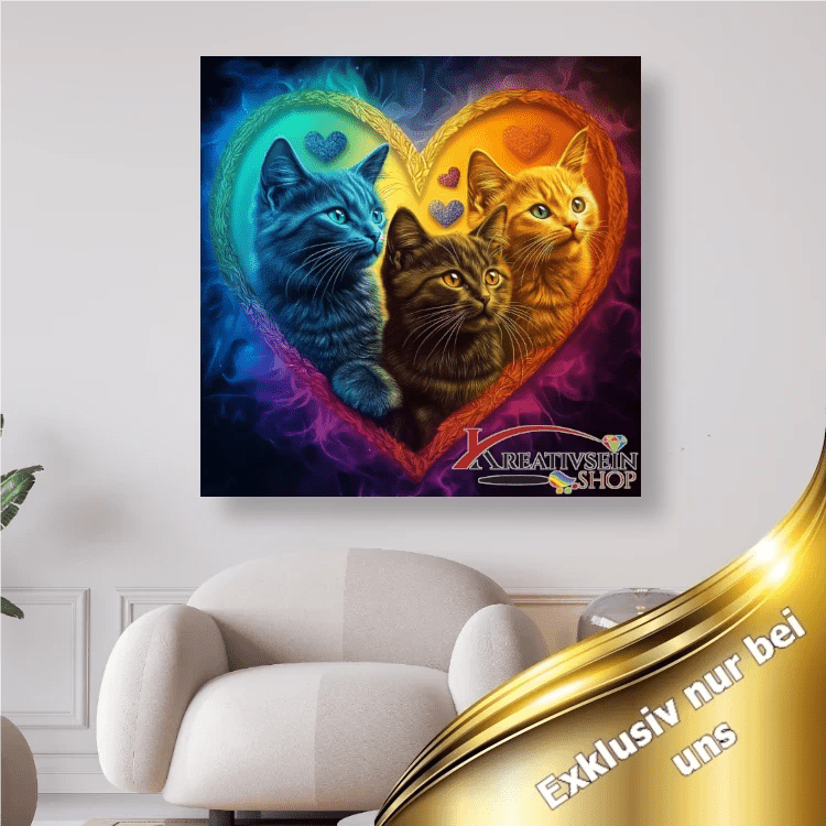 3 Katzen im bunten Herz - 5D DIY Diamond Painting