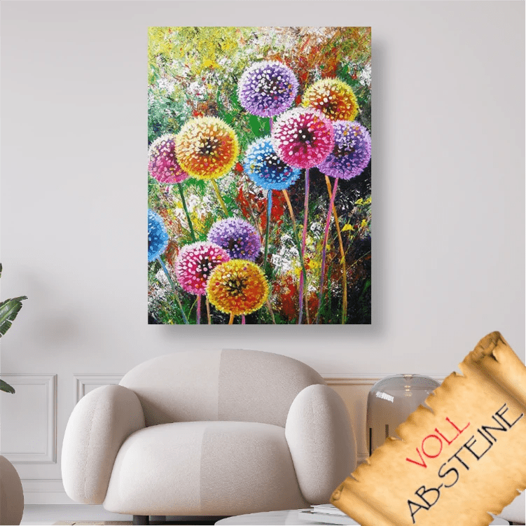 Folgende Inhalte enthält Dein Motiv ➩ Bunte Pusteblumen Wiese - Voll AB 5D DIY Diamond Painting