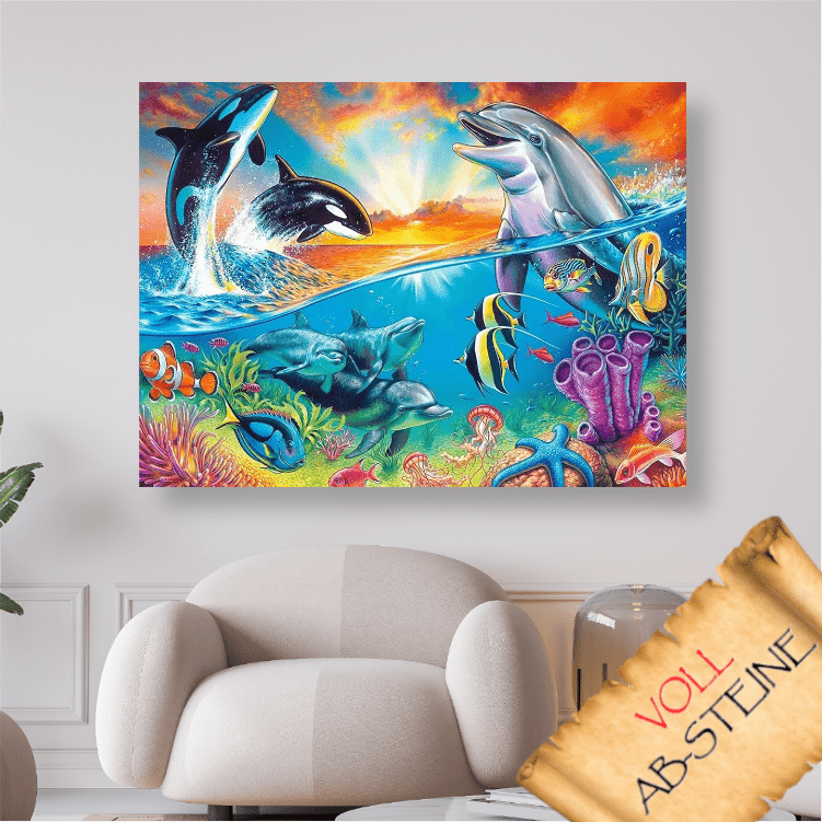 ➩ Hochwertige bedruckte Leinwand mit Deinem Wunschmotiv ➩ Delfine im Meer - Voll AB 5D DIY Diamond Painting. (nummeriert mit Zahlen-/ Symbolcode)