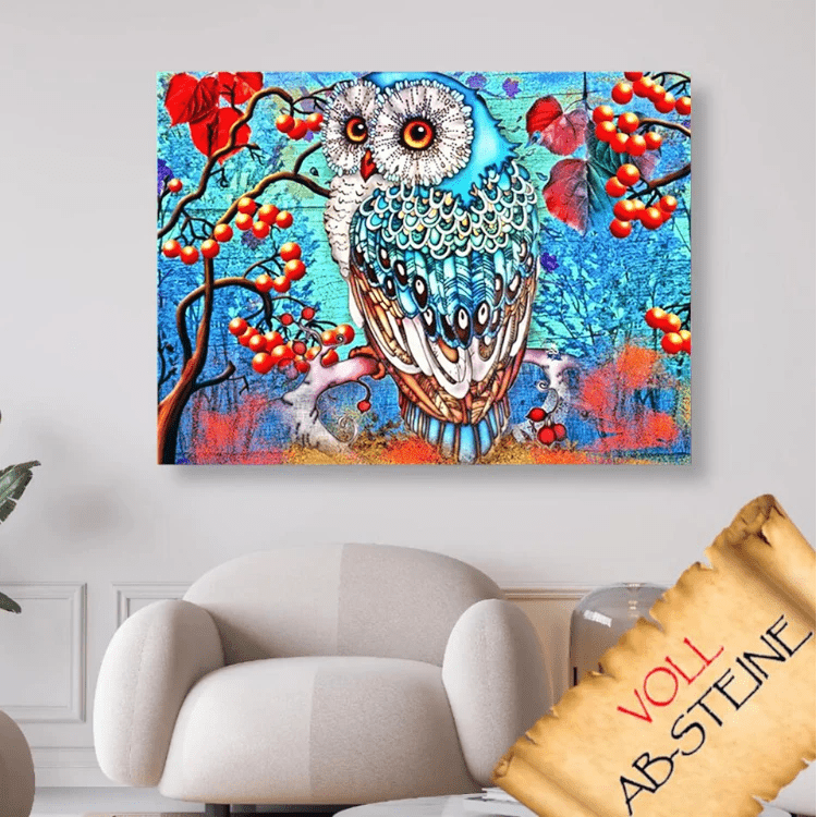 ➩ Hochwertige bedruckte Leinwand mit Deinem Wunschmotiv ➩ Eule sitzt auf Ast - Voll AB 5D DIY Diamond Painting. (nummeriert mit Zahlen-/ Symbolcode)