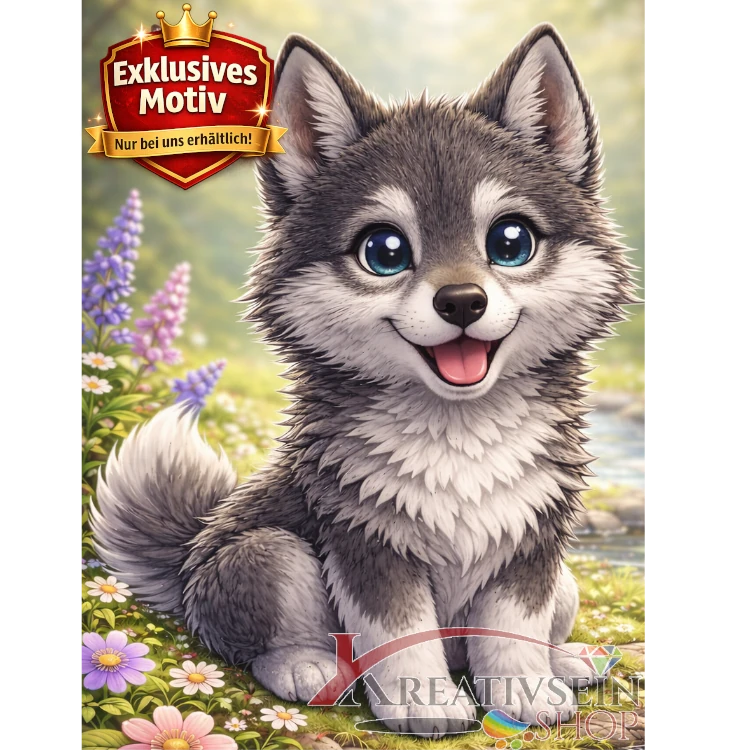 🐺 Kawaii Diamond Painting Set „Süßer Wolf mit Schmetterling“ – Niedliches DIY Motiv