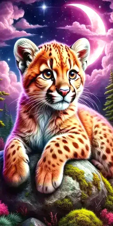 Kleiner Tiger mit Mond - 5D DIY Diamond Painting