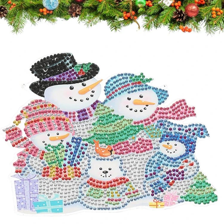 Schneemannfamilie mit Hund Aufhänger - Diamond Painting