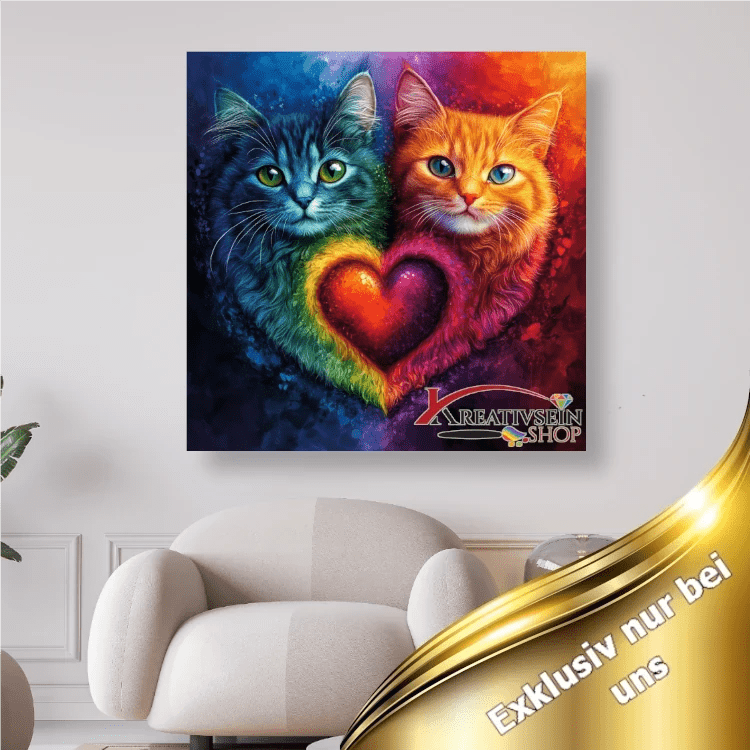 2 Katzen mit Herz - 5D DIY Diamond Painting