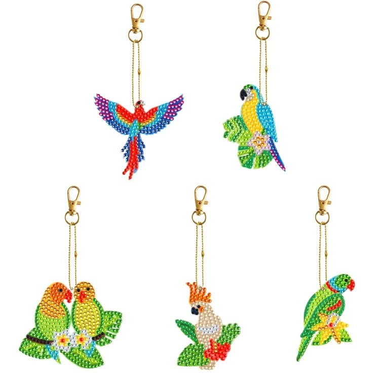 5 x Papagei Schlüsselanhänger - Diamond Painting