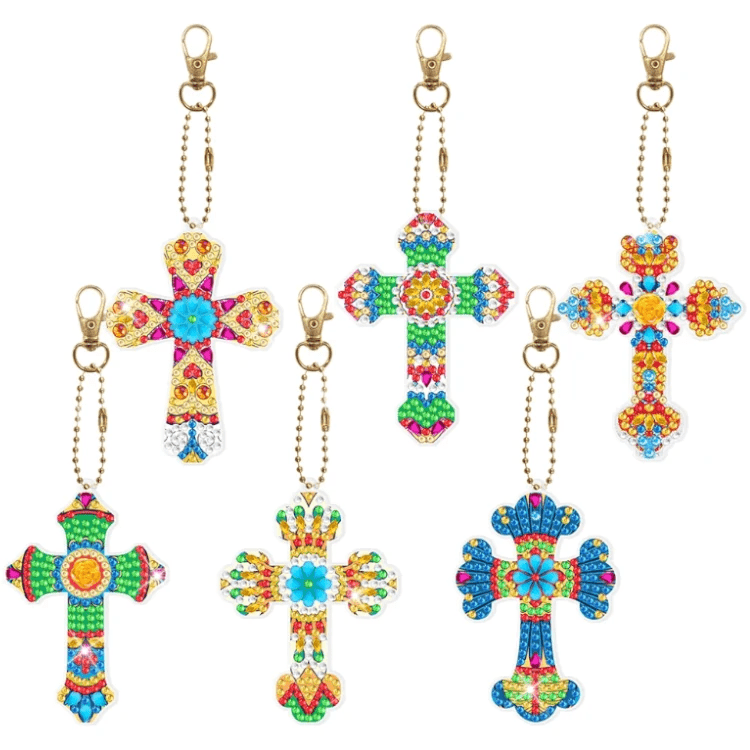 6 x Kreuz Schlüsselanhänger - Diamond Painting