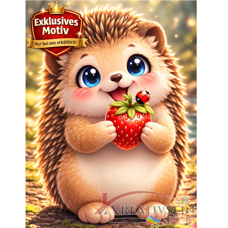 🦔 Kawaii Diamond Painting Set „Süßer Igel mit Erdbeere“ – Niedliches DIY Motiv