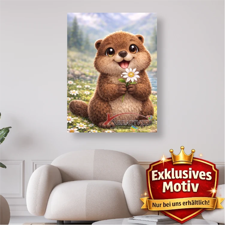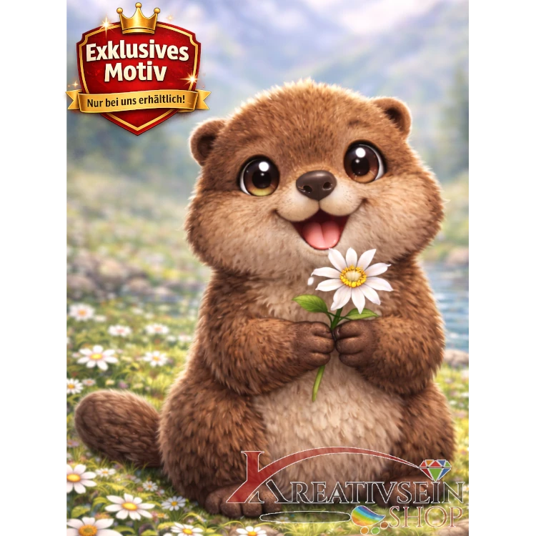 🦫 Kawaii Diamond Painting Set „Süßes Murmeltier mit Blume“ – Liebevolles DIY Motiv