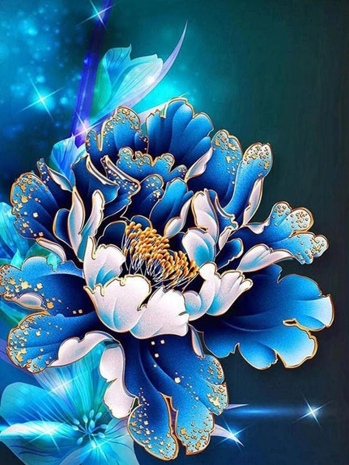 Folgende Inhalte enthält Dein Motiv ➩ Magische blaue Blüte - Voll AB 5D DIY Diamond Painting