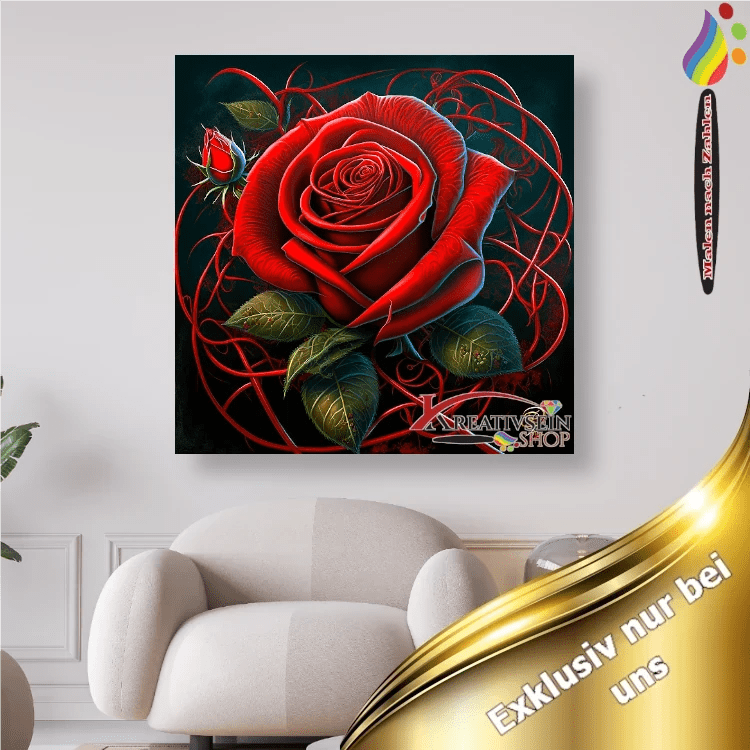 Rote Rosenblüte - Malen nach Zahlen
