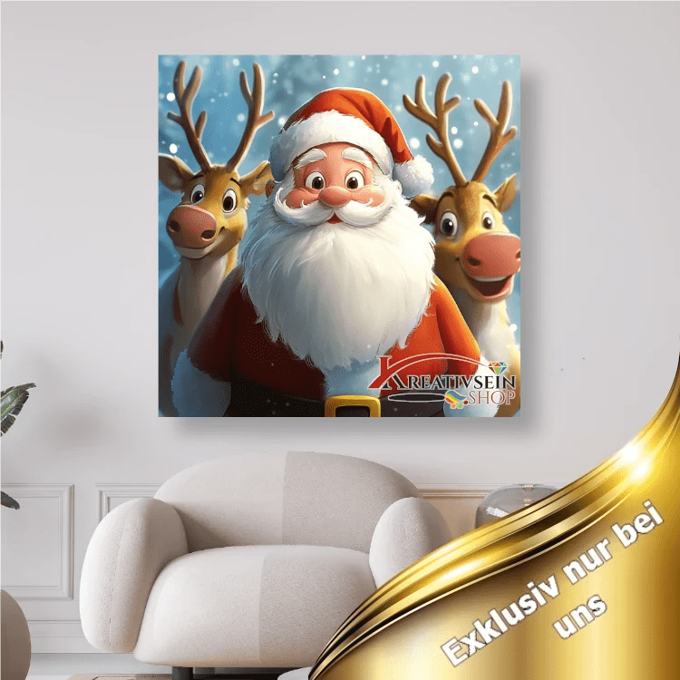Weihnachtsmann mit 2 Rentieren - 5D DIY Diamond Painting